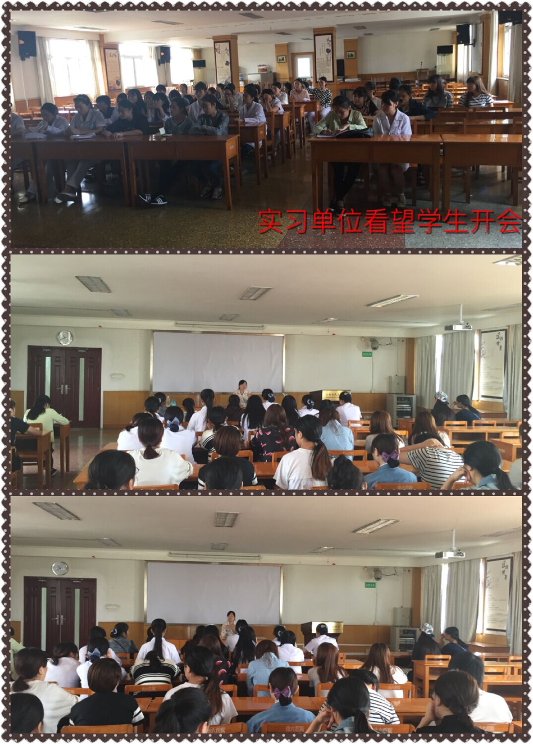 实习单位老师与学校老师共同参加会议:同学们专心听老师传达学校文件精神,并交流实习生活中的感受