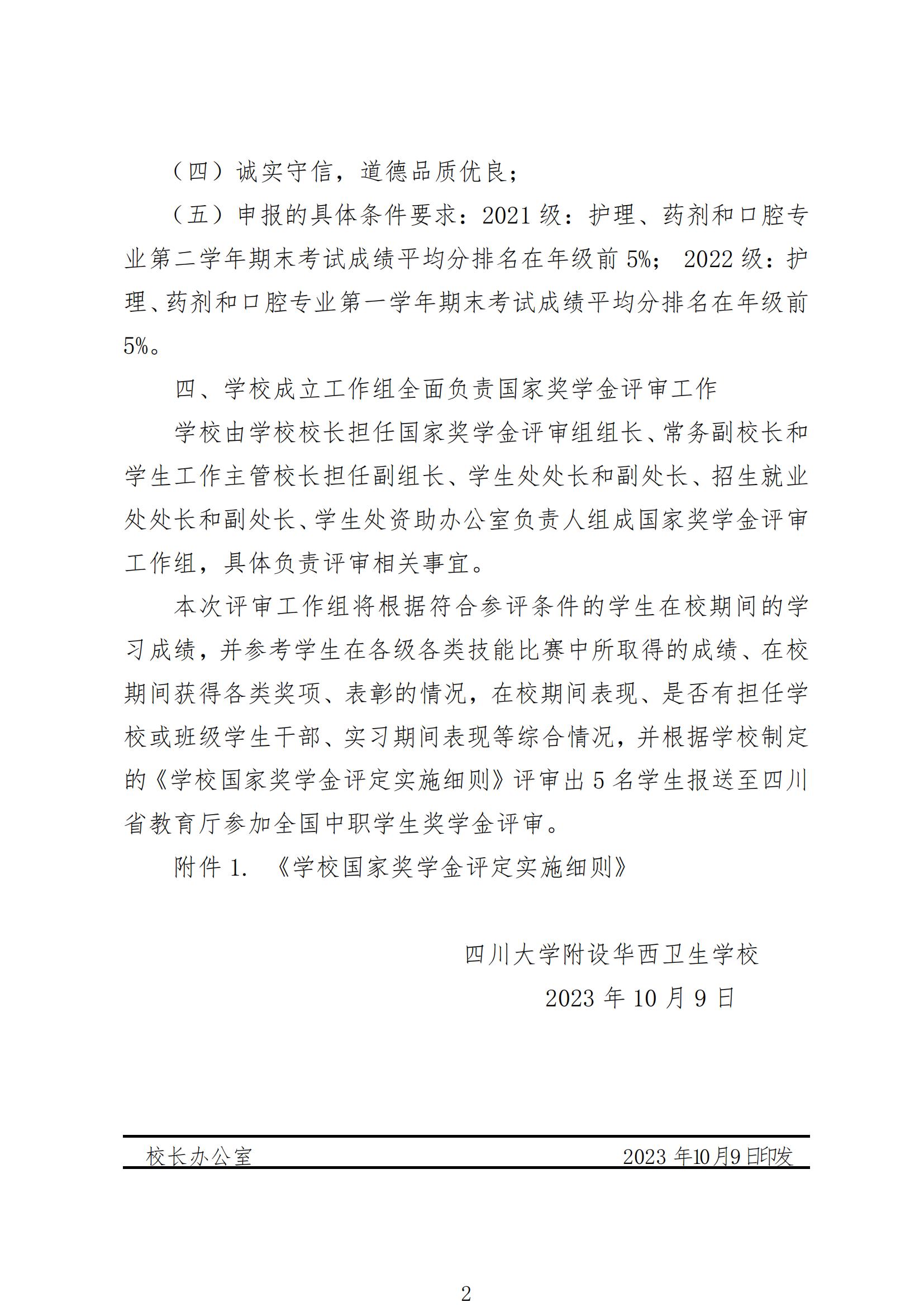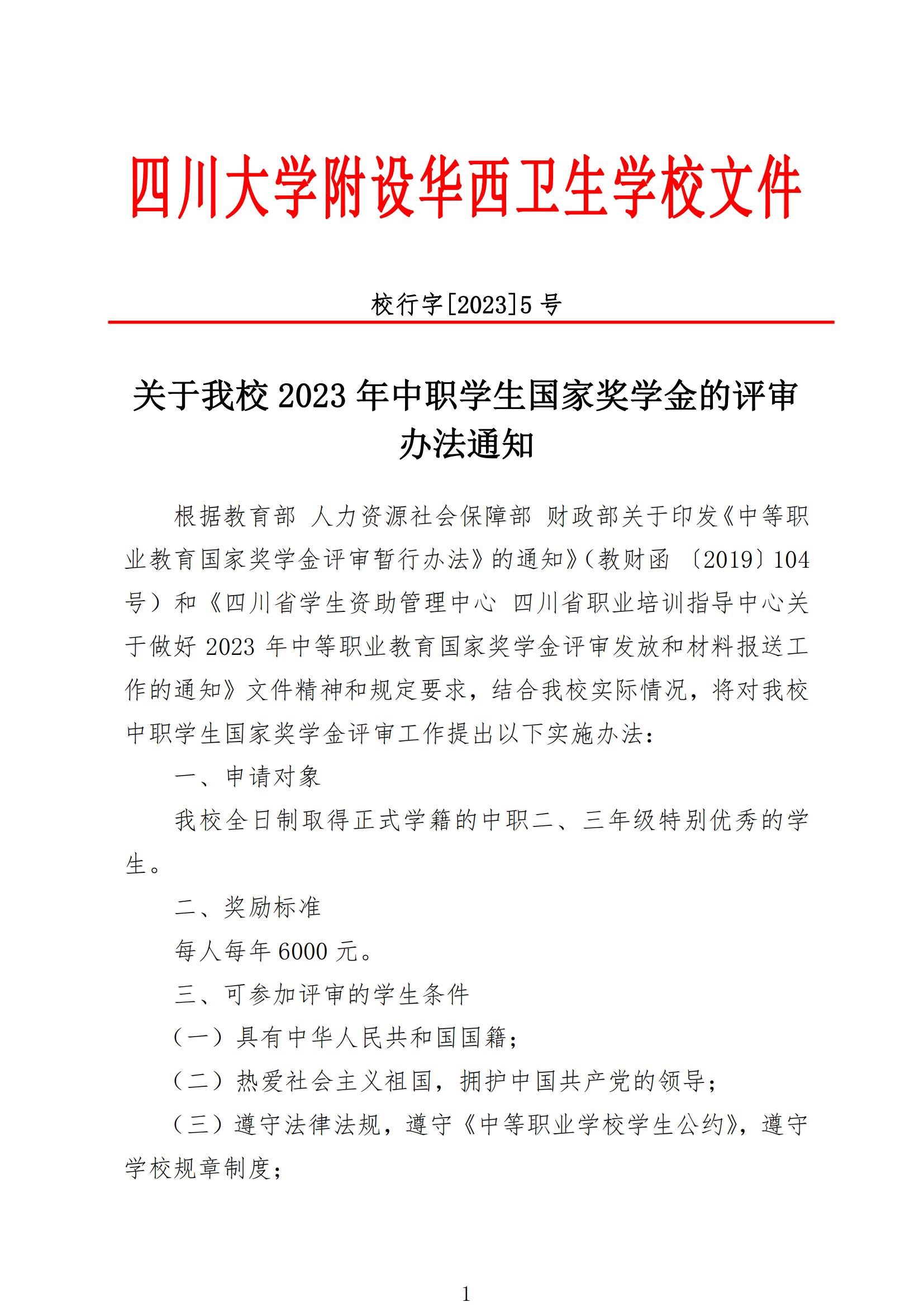 关于我校2023年中职学生国家奖学金的评审办法通知