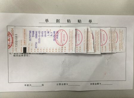 (1)靠线框右侧,自左至右沿上边以鱼鳞式粘贴票据,每张票据均需贴在粘贴单框线内。